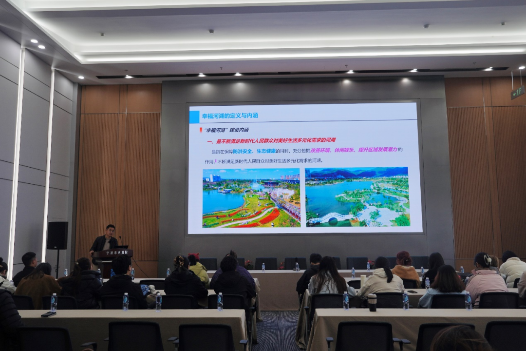 我院規(guī)劃院綜合與市場發(fā)展部主任胡劍以“新時期幸福河湖建設思路及典型案例”為主題,結合生動案例,深入解讀"幸福河湖"的豐富內涵:安全、生態(tài)、宜居、智慧、文化,是按照“全域推進、重點打造”的總體思路,“點、線、面”開展多元化精品示范建設,構建全域幸福格局,展現人水和諧的寧波實踐。