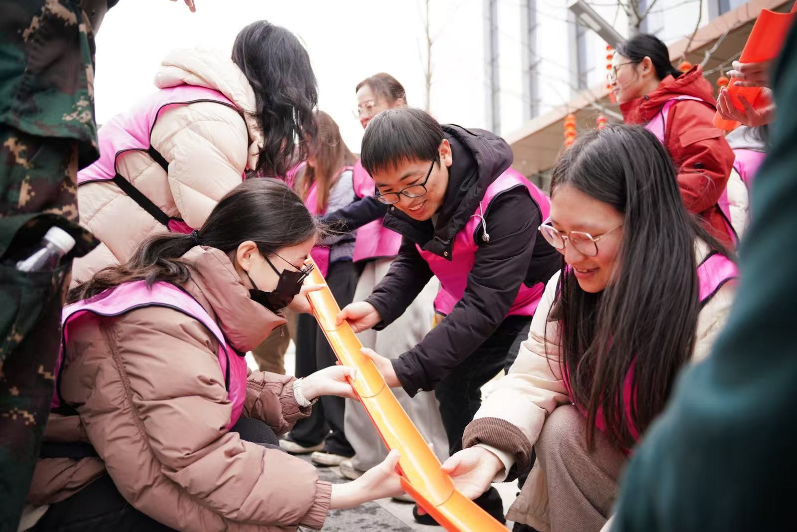 3月4日下午,春意盎然,陽光明媚,我院辦公樓入口廣場上歡聲笑語、熱鬧非凡,一場別開生面的新春趣味運(yùn)動會在這里火熱進(jìn)行。來自全院各部門的300余名員工組成的10支代表隊,在8個趣味項目中同臺競技,充分展現(xiàn)出寧波院人團(tuán)結(jié)協(xié)作、奮發(fā)向上的精神風(fēng)貌。