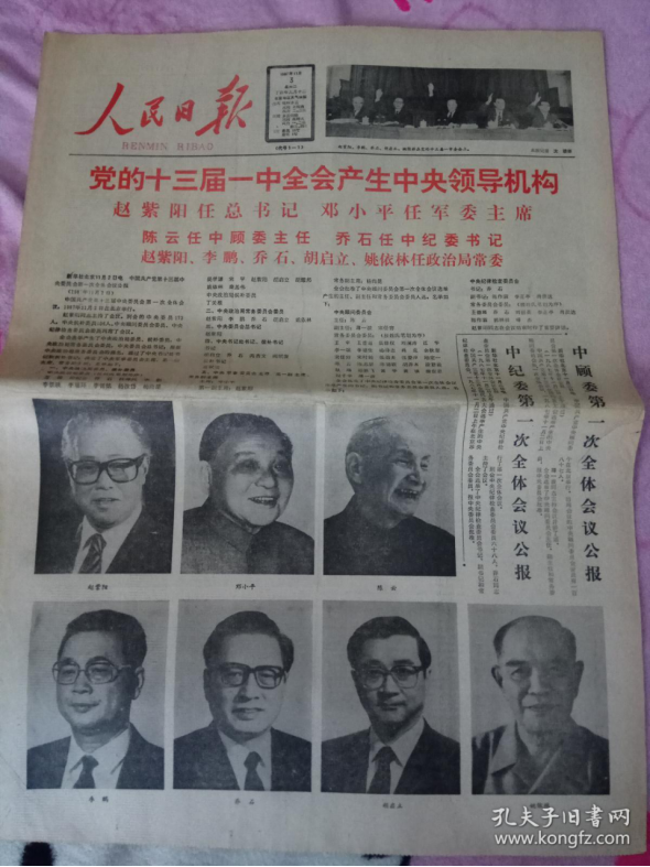 中共十三屆一中全會-人民日報