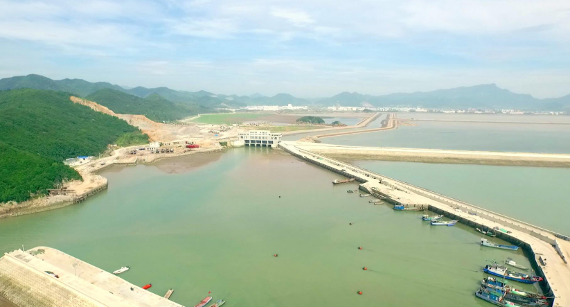 工程圍涂面積2.12萬(wàn)畝,海堤全長(zhǎng)約5345m。工程項(xiàng)目由海堤、水閘、排澇河、防波堤、船閘、交通堤、交通橋等組成。海堤工程包括南堤4508.3m、北堤840m;水閘工程炮臺(tái)山主排閘5孔×8m、飯桶山主納閘凈寬4孔×8m、貓頭納排閘3孔×3m、竹灣沖沙閘1孔×3m;河道工程包括炮臺(tái)山河道3081m、貓頭納排河2390m、白巖山主排河1300m、飯桶山主排河(3064m)以及南區(qū)納潮干河(4073m);防波堤長(zhǎng)為703.87m;船閘凈寬10m;交通工程包括Ⅰ號(hào)交通堤、Ⅱ號(hào)交通堤及北分支、南分支交通堤,施工道路、竹灣碼頭、竹灣錨地、毛灣碼頭及防波堤、1#交通橋、2#交通橋。