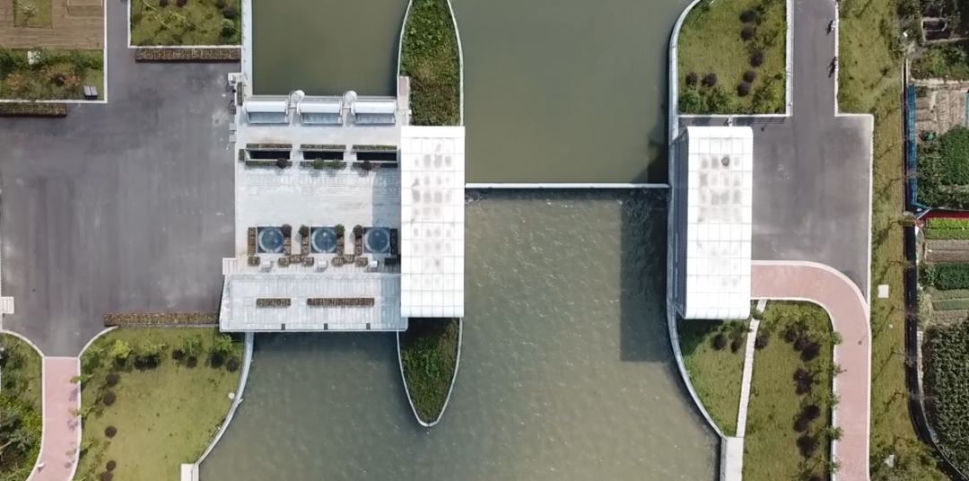 項目建筑設(shè)計與周邊環(huán)境完美結(jié)合。泵站及閘門上部采用無廠房設(shè)計,水泵機組采用立式潛水機組,閘門采用底軸驅(qū)動翻板門,泵站上下游視野通透,觀感效果佳。管理房屋頂設(shè)計為綠化屋頂,管理房隱藏于周邊綠化之中,滿足姚江岸高標準景觀要求。生態(tài)河道設(shè)計符合人文和諧之美。護岸采用干壘生態(tài)擋塊,中間預(yù)留魚槽設(shè)計,充分體現(xiàn)了生態(tài)環(huán)保設(shè)計理念。