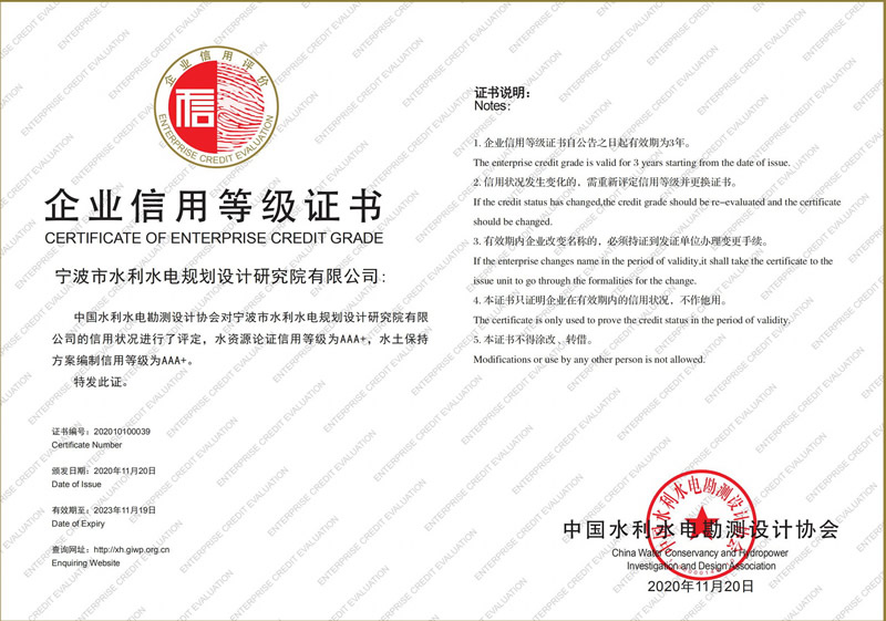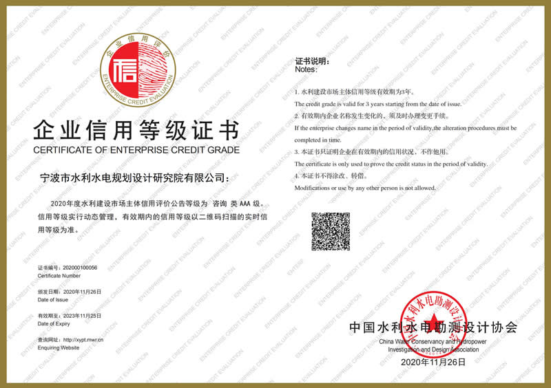 水利水電設(shè)計(jì)AAA級信用企業(yè)